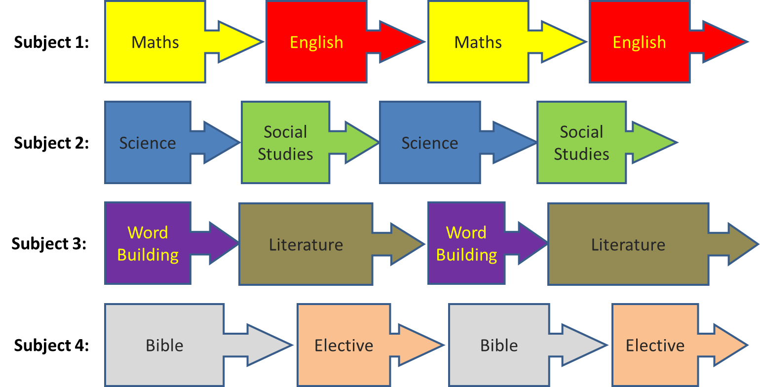 Here is an example of how a student can be doing four subjects at any one time. They don’t all have to start and finish at the same time: